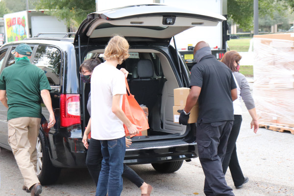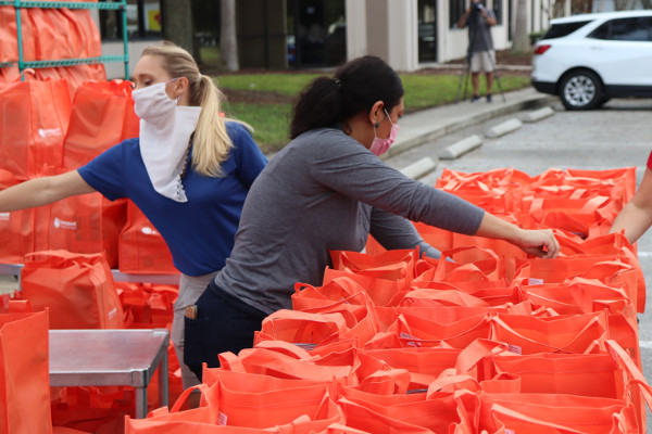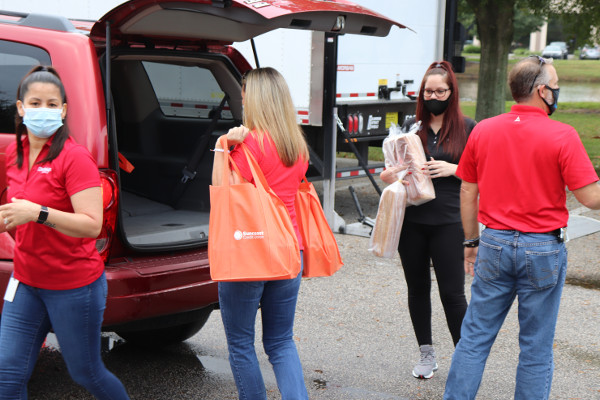 Volunteer teams spent three days facilitating this pick-up event where thousands of local families picked up staples like canned fruit, shelf-stable milk, frozen breakfast items, yogurt, and bread.