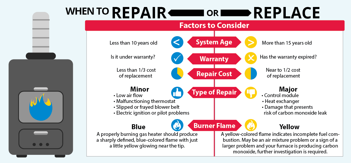 The last two years of a furnace’s life are often filled with breakdowns and issues that need repairs, these could be a warning to replace it before the coldest winter months.