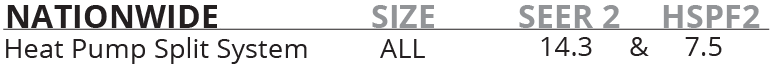 - January 1, 2023: New higher rated SEER2/EER2/HSPF2 units will be required as you purchase and install new systems. Current inventory of 14 SEER units will be limited and can only be installed in the North region.