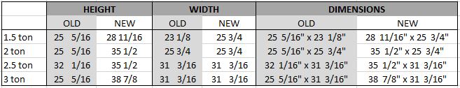 AirQuest units: There are minimal increases to the AirQuest units, no more than 1-1/2”