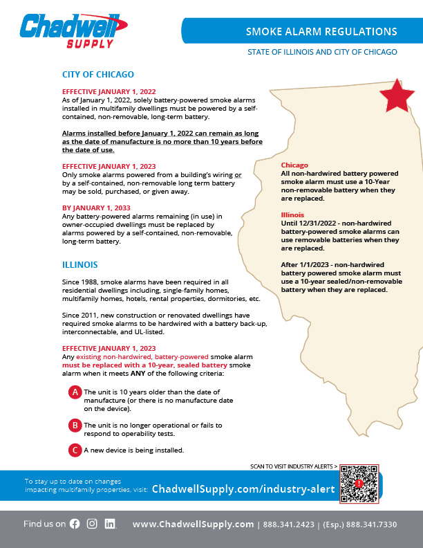 For our customers in Illinois, requirements will be changing on January 1, 2023. As you plan for turns and purchasing smoke detectors to replace those reaching the end of their ten year lifespan, please make note of these changes.