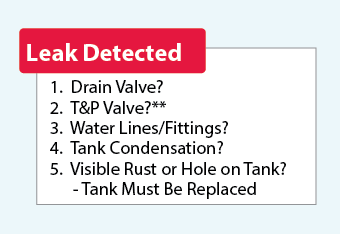 However, if you see visible rust on the tank or water leaking from a pinhole in the tank body, the water heater will need to be replaced as soon as possible, there is no repair for this.