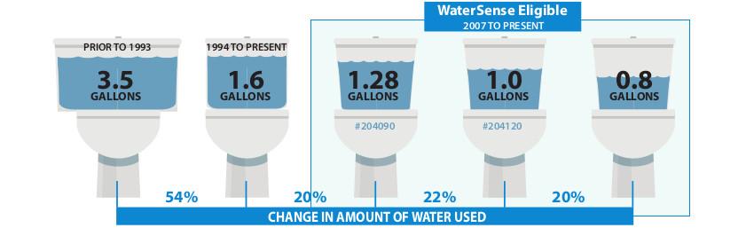 Replacing old toilets flushing at 1.6 gpf or more with WaterSense labeled models flushing at 1.28 gpf or less can result in significant water savings.