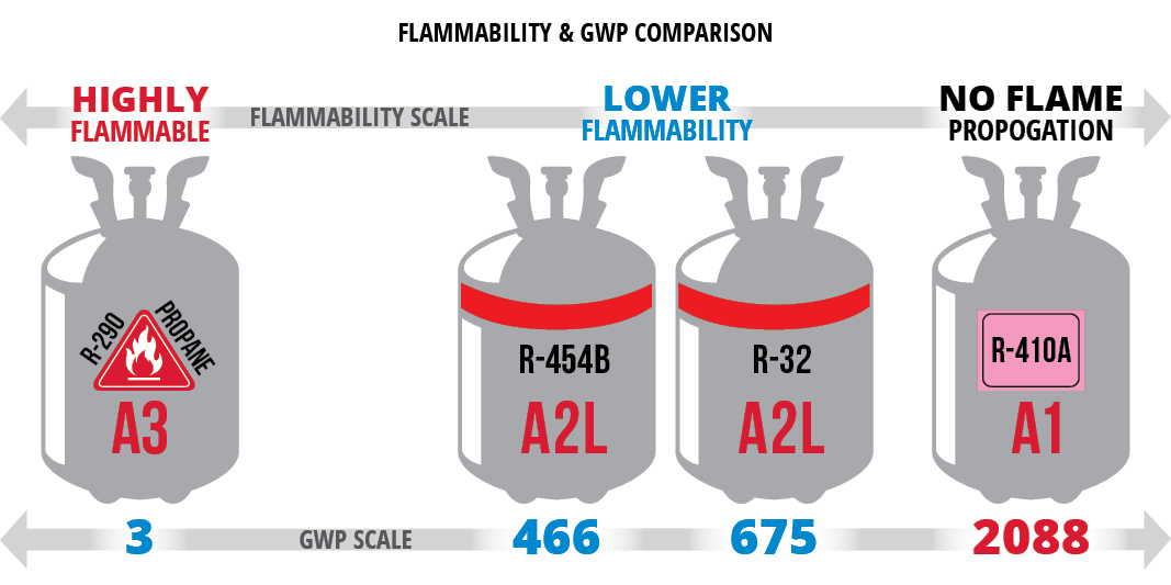 A2L refrigerants are rated as having low flammability potential. When handled correctly, using the proper equipment and tools, A2L refrigerants are safe and reliable. A2L refrigerants have been used in Europe for decades and have a proven track record.