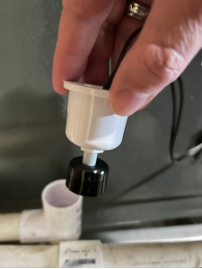 - After removing the switch from the fitting, gently slide the black float piece up the rod toward the switch housing.