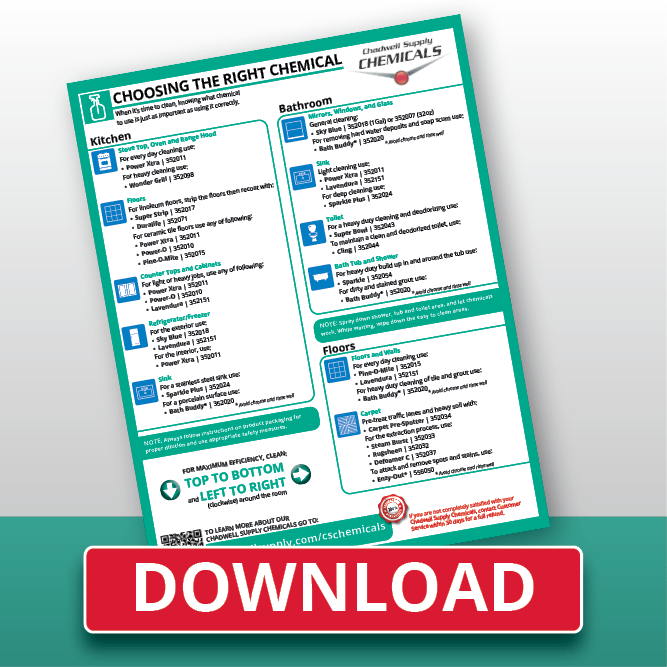 For an in-depth guide on how to choose the perfect Chadwell Supply chemical to clean anything, check out our easy to follow “Choosing the Right Chemical” guide.